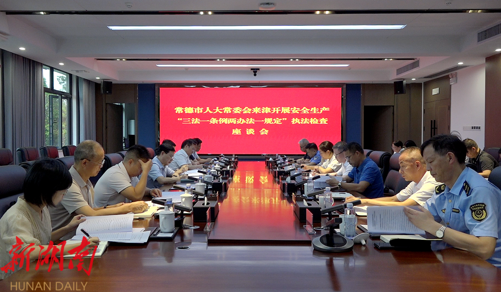 9月30日,常德市人大常委会副主任、一级巡视员尹正锡率执法检查组来津,开展安全生产“三法一条例两办法一规定”执法检查。