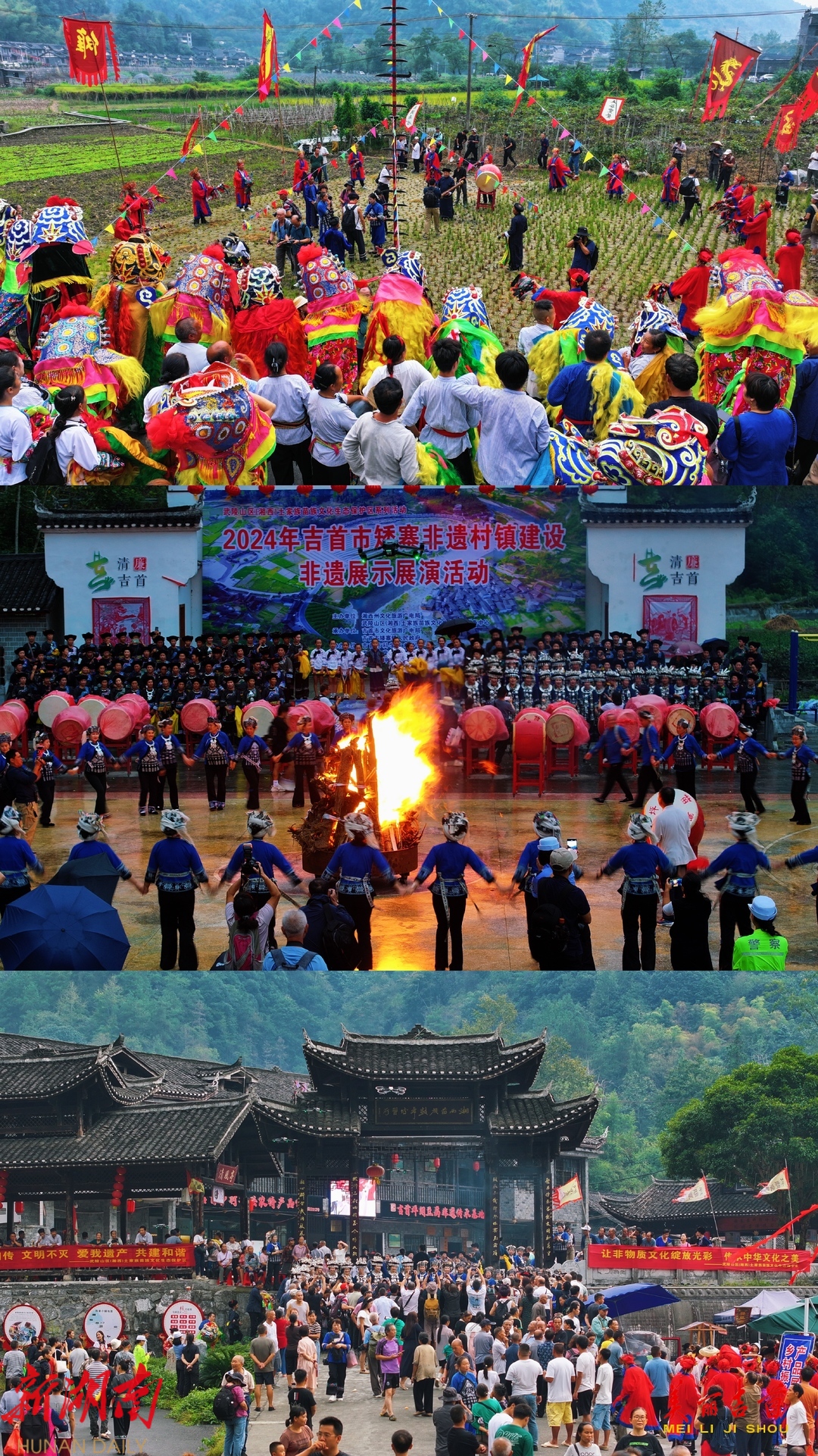 近日,武陵山区(湘西)土家族苗族文化生态保护区系列活动在矮寨镇坪朗村举行。此次活动旨在展示多彩的土家族、苗族非物质文化遗产,共同营造欢乐、祥和的国庆氛围,同时也展现了少数民族群众昂扬奋进的新时代风貌。