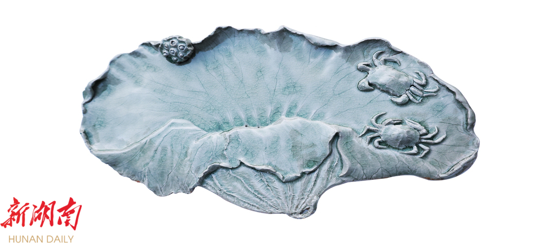 湖南日报·新湖南客户端10月2日讯(通讯员 刘广 孟雄)一片碧绿的荷叶徐徐舒展,两只螃蟹偎依嬉戏。荷周边,镶嵌一颗小小的七籽莲蓬,含露乍开,清气满溢。这是岳州窑烧制技艺代表性传承人杨宗萱最近创作的荷系列茶盘作品,名曰“和谐”,其画面简单大气,线条优美,独具匠心。