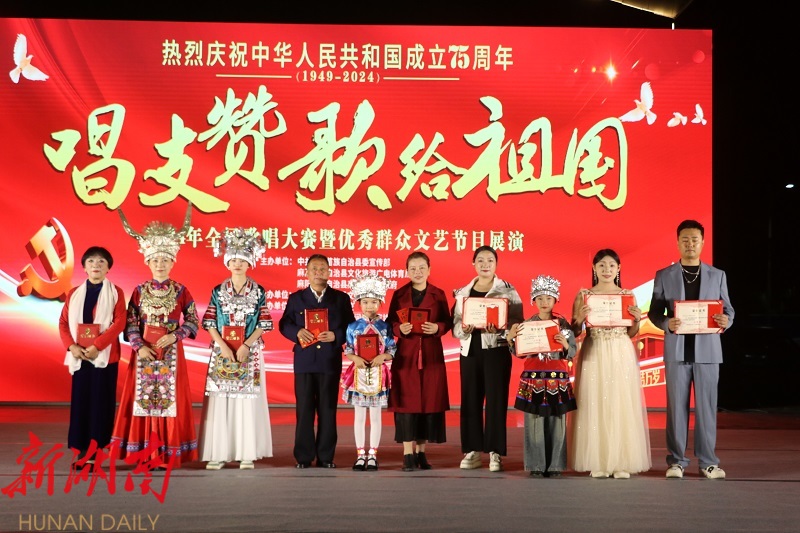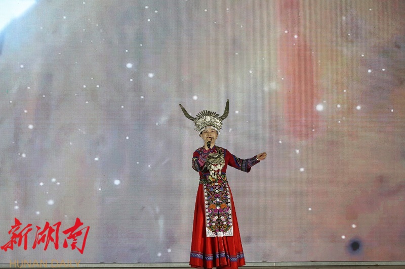 远从北京赶回麻阳参加歌曲表演的中央民族歌舞团歌唱演员田欢用歌声表达了对祖国的深情:“祝愿我们的国家越来越美好,祝家乡越来越好。”