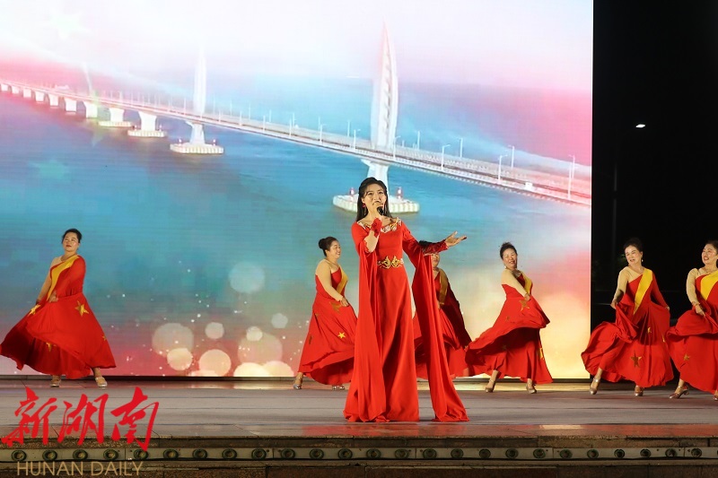 歌舞表演《我爱你中国》《棒棒锤在岩石上》《报答》等精彩节目轮番登场。《我爱你中国》唱出了对于国家未来发展的深刻期盼和祝福;《报答》激荡着一股守初心、担使命的磅礴力量。欢快的舞蹈、优美的旋律、嘹亮的歌声,一次次将活动推向高潮。