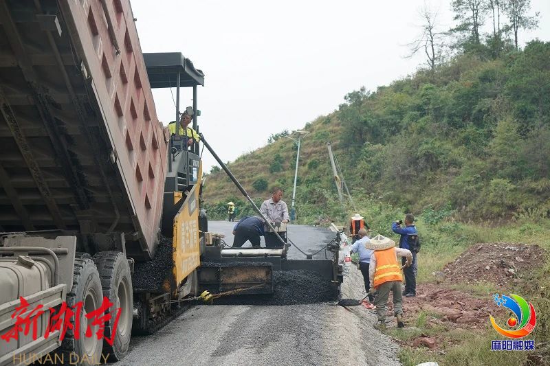 10月3日,在江口墟至舒家村公路提质改造项目的江口墟镇黄泥溪村路段,工人师傅正加班加点摊铺沥青路面,即使是国庆假期也是一派忙碌施工景象。