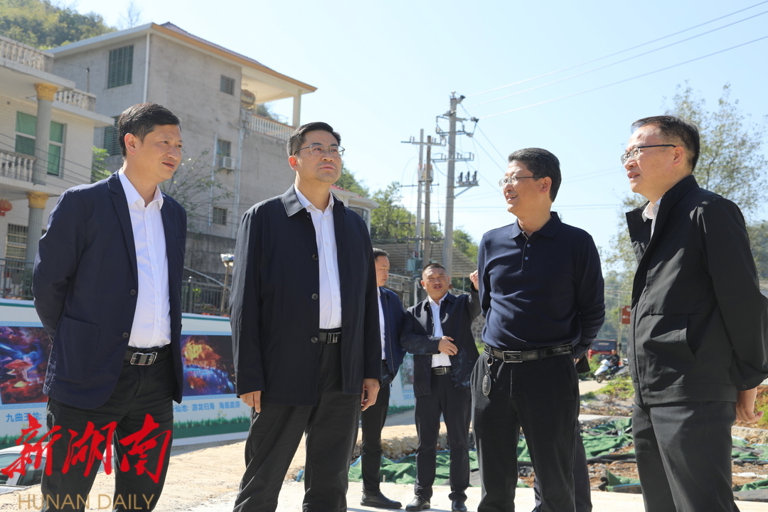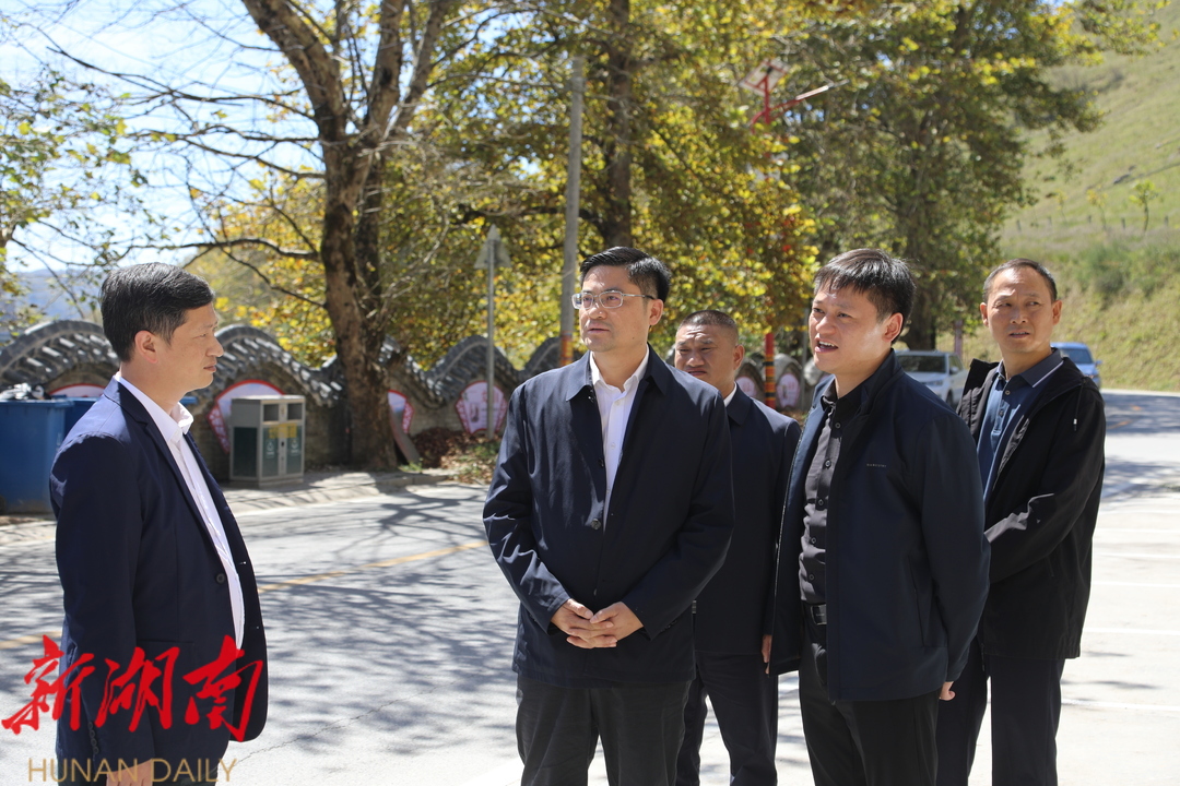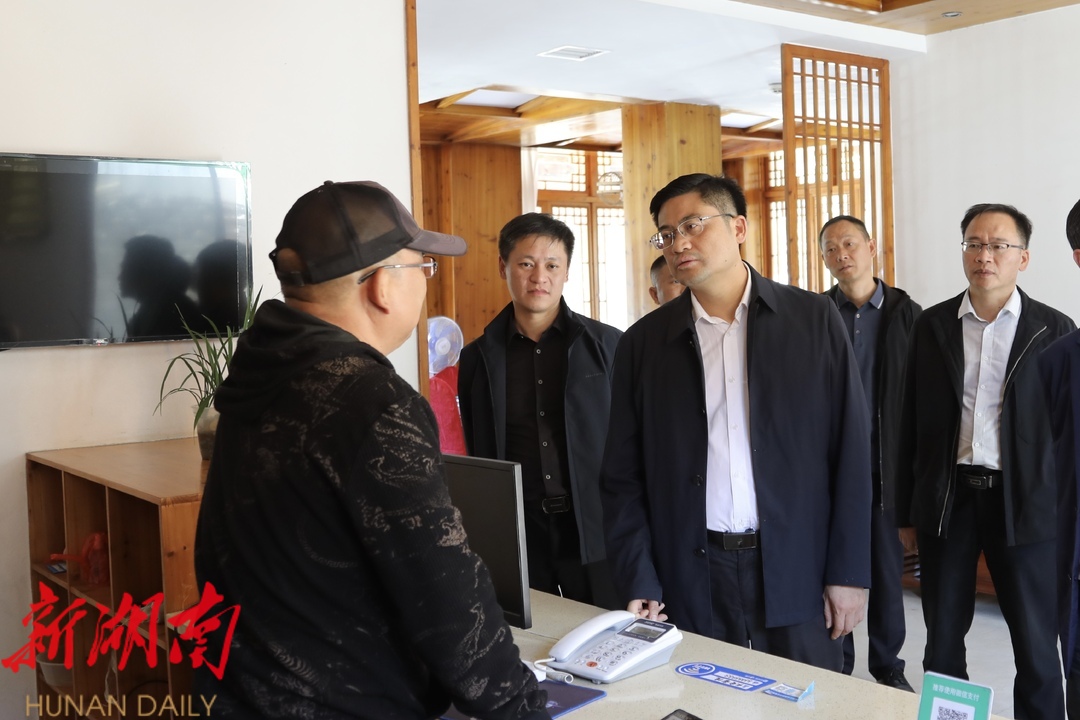 图为县委书记余勋伟一行在长安营客栈督导相关工作