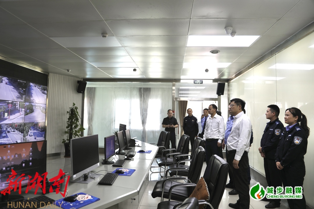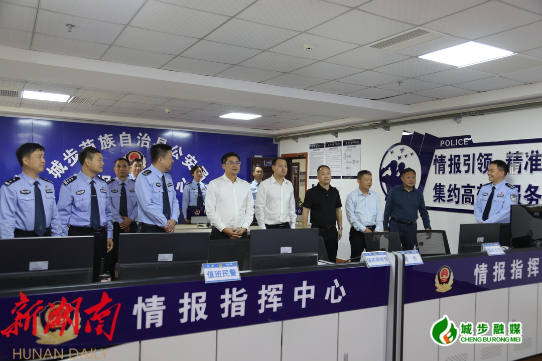 图为县委书记余勋伟一行在县公安局情报指挥中心了解相关工作运行情况