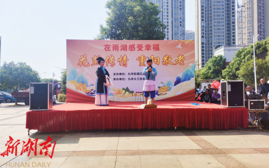 活动当天,社区中心广场上人头攒动,热闹非凡。活动以一场精彩的花鼓戏拉开序幕,老艺术家们用他们精湛的技艺和饱满的热情,为在场的观众带来了一场视听盛宴。花鼓戏作为非物质文化遗产,不仅展现了中国传统文化的魅力,更让老人们感受到了家乡的温暖和节日的喜悦。