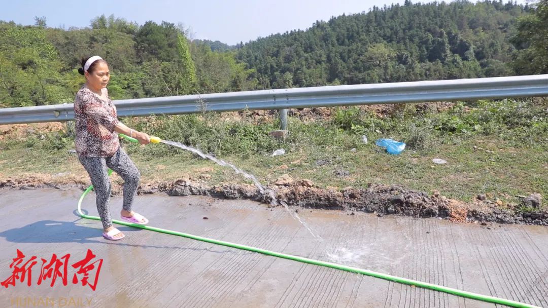 在行廊镇山垛村,施工人员正在对已经修好的水泥路进行洒水养护工作,这条村道拓宽项目于今年9月中旬开始实施,在原有村道基础上修建长约650米,宽1.5米,硬化厚度0.2米的道路。目前已全线竣工。