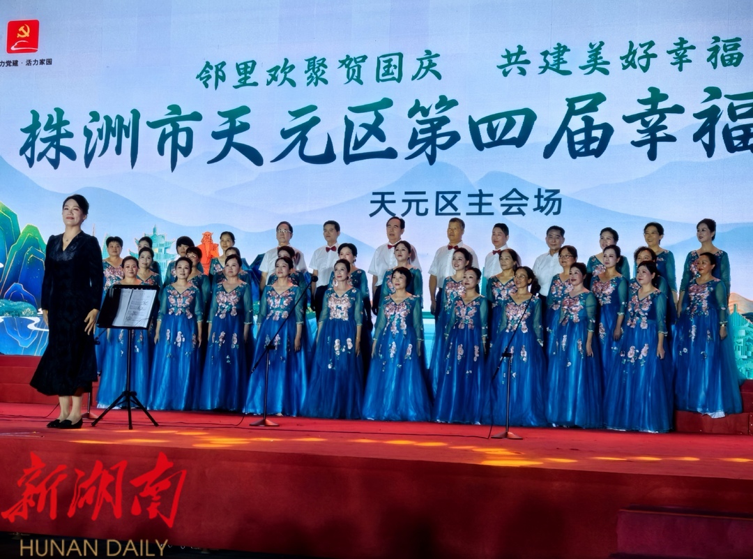 当天晚上,天元区第四届“幸福邻里节”在湘水湾小区隆重开幕。开幕仪式上,栗雨街道表彰了36名积极参与基层治理,为小区和谐幸福默默奉献的“优秀基层治理骨干”“最美志愿者”和“最美邻长”,为3家养老服务圈爱心商户授牌。以“邻里学”“邻里乐”“邻里亲”“邻里帮”四大板块,推出了政策宣传、文艺演出、漆扇制作、湾湾夜市、跳蚤市场、便民服务等丰富多彩的活动项目,激发了居民们走出家门,积极参与活动的热情。湘水湾艺术团为广大居民朋友呈现了一场惊艳的视听盛宴,现场表演结合大屏幕风景,音乐、舞蹈、独唱多种艺术形式荟聚一堂,感受生机勃勃的文化,精彩的歌舞表演吸引了众多居民的目光,欢声笑语在小区内回荡,营造出一片欢乐的气氛。