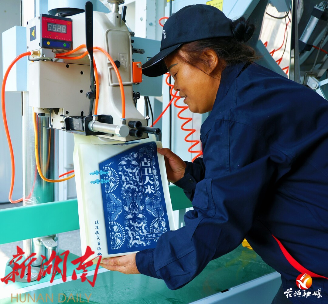 装袋、打包、搬运......生产流水线上,工人正在各自岗位上忙碌着,整个加工过程安全细致、有条不紊。大米加工厂的建成不仅为种植户解决了加工问题,还为当地村民提供了就业岗位,让他们实现了“家门口就业”。