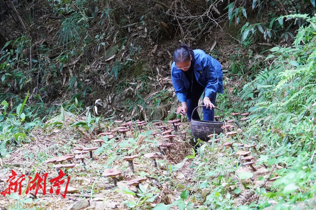 新新邵客户端10月14日 金秋十月,正是硕果累累的季节。在新邵县太芝庙镇龙山村的灵芝种植基地里,一朵朵肥厚饱满的灵芝遍满山林,株株坚挺,迎来丰收。工人们忙碌其间,正小心翼翼地采收灵芝。