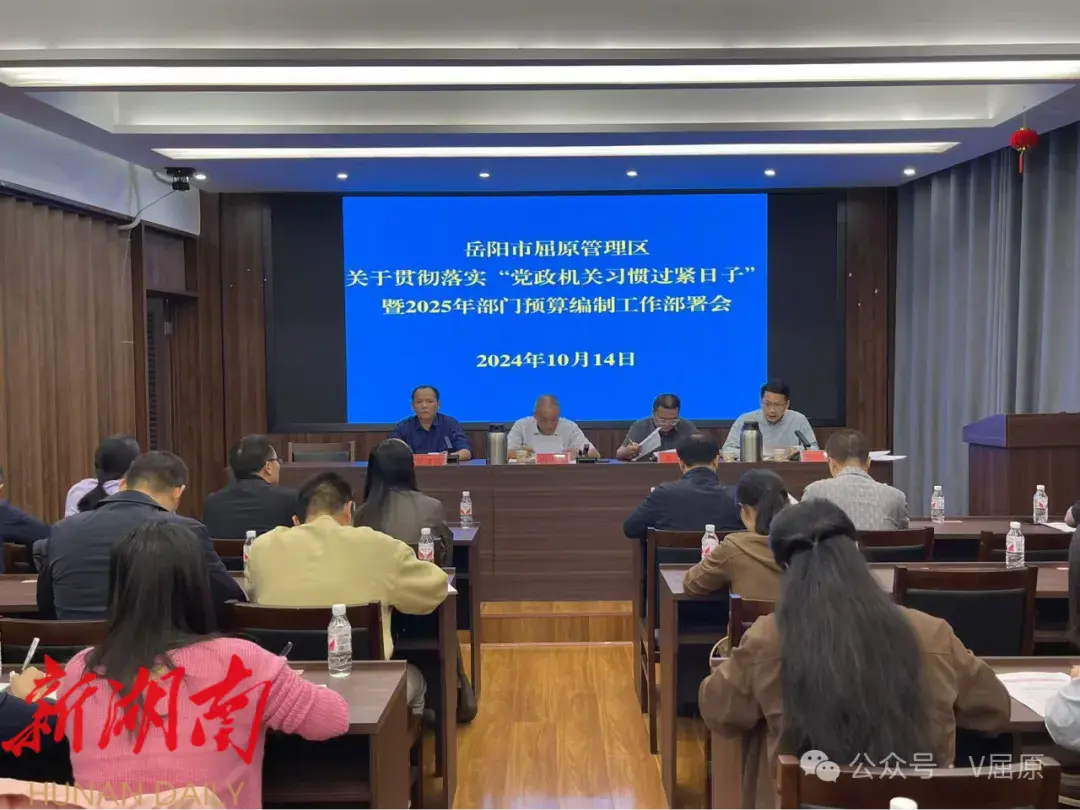湖南日报·新湖南客户端10月15日讯(屈原管理区财政局供稿)为贯彻落实“党政机关习惯过紧日子”要求,确保高质量完成2025年预算编制工作,进一步提高全区各预算部门(单位)财务人员业务水平。10月14日,区财政局组织召开全区预算部门(单位)贯彻落实“党政机关习惯过紧日子”暨2025年部门预算编制工作部署会,区管委会副主任胡志刚出席会议并讲话,各单位财务负责人、财务人员等100余人参加本次培训会议。