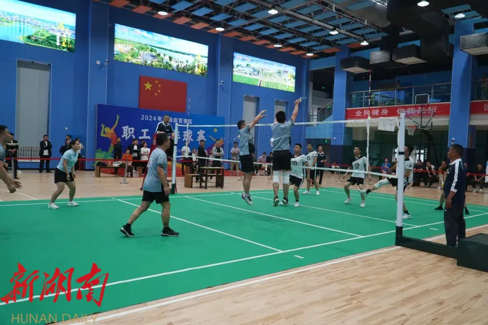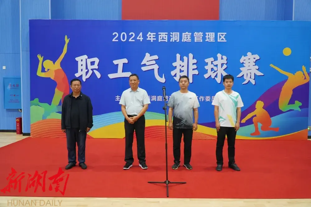 为丰富广大干部群众文体生活,持续加强文化阵地建设,10月15日,西洞庭管理区气排球赛在创新创业示范园职工健身中心开幕。区党委委员、管委会副主任谈海波出席,区党委委员、纪委书记、监工委主任孙晖宇宣布比赛开幕。
