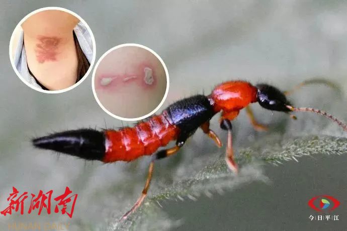 隐翅虫夜间飞进房间落在人体表面分泌毒汁,或虫体被拍碎后释放出毒液,2-4小时即可引起皮炎,也叫做隐翅虫皮炎。必须要重视的是: 若沾到眼睛,会灼伤结膜、角膜,不及时治疗,严重的甚至会失明。