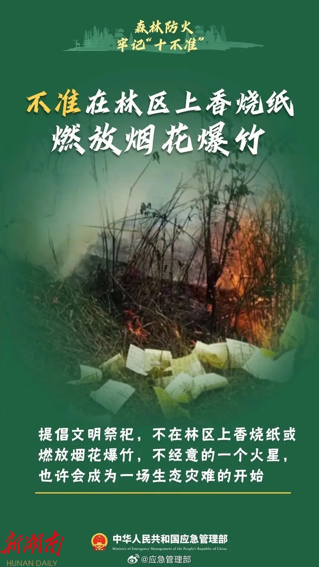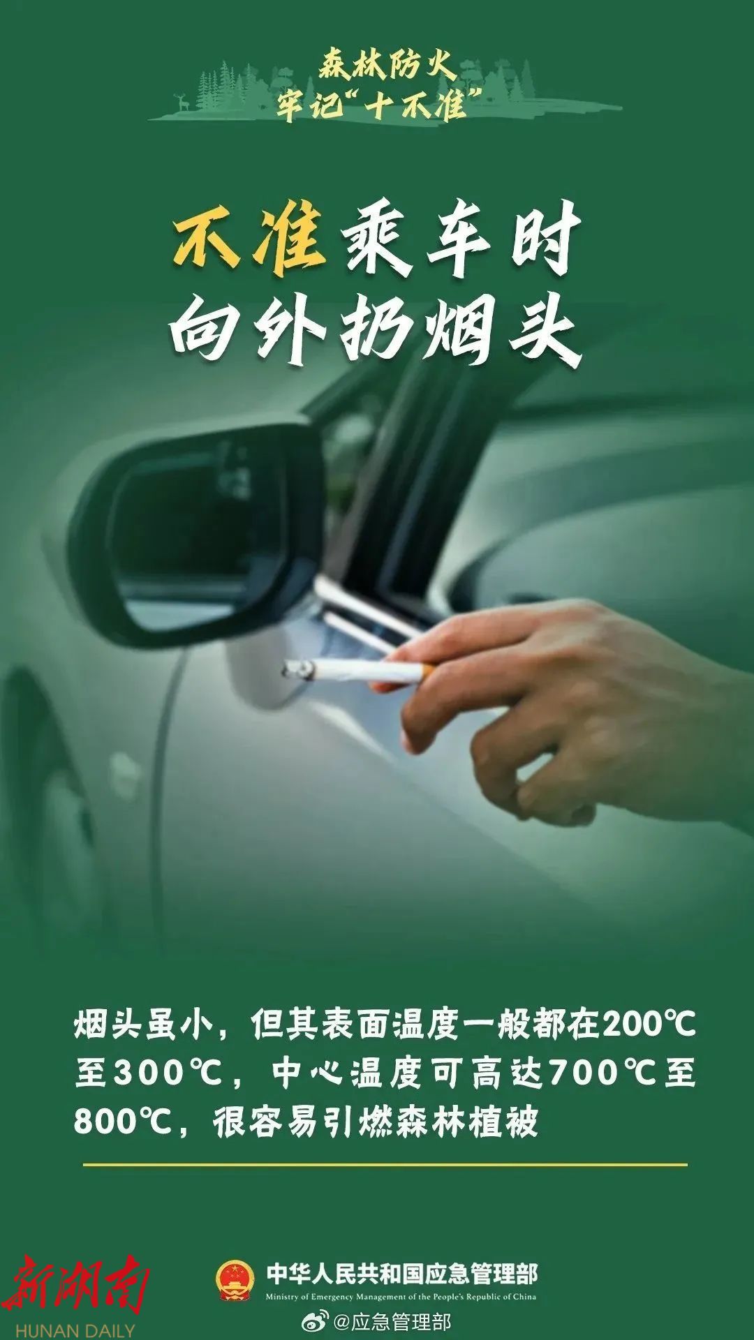 森林火险预警发布单指出, 未来24小时怀化(全境)、邵阳(全境)、岳阳(全境) 、娄底(全境)、长沙(全境)、湘潭(全境)、湘西州(全境)、益阳(全境)、张家界(全境)、常德(全境)、衡阳(蒸湘区、石鼓区、衡阳县、祁东、南岳、衡东、衡山)、株洲(市区、攸县、醴陵)、永州(东安)森林火险等级较高(3级),请按森林火灾应急预案规定,启动黄色预警响应措施: 加强防火值班调度,加强野外火源管理,加强森林防灭火巡护和瞭望监测,加强火险隐患排查,落实防灭火装备物资,县乡两级森林消防队伍进入待命状态。省森防办温馨提示:让我们积极行动起来,齐心协力做好森林防灭火工作,让山更绿、水更清、天更蓝。