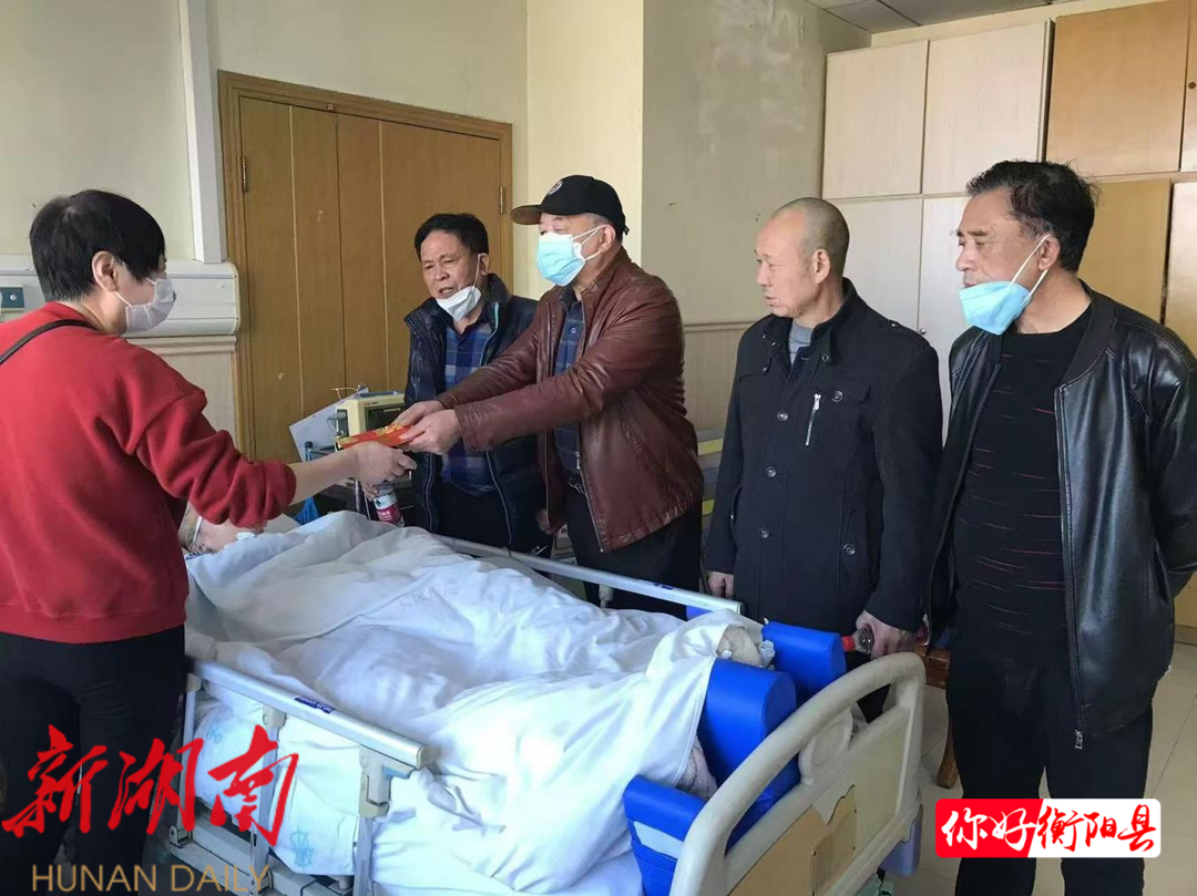 2022年3月,得知三湖镇籍战友汪仕根身患尿毒症,无力承担高昂医药费,廖卫平第一时间在战友群发起捐款倡议,69名战友踊跃响应,捐款8650元。廖卫平和7名战友代表带着深情厚谊,将爱心款送到正在县中医院治疗的汪仕根手中。那一刻,这份温暖为生命垂危的他带来重生希望。