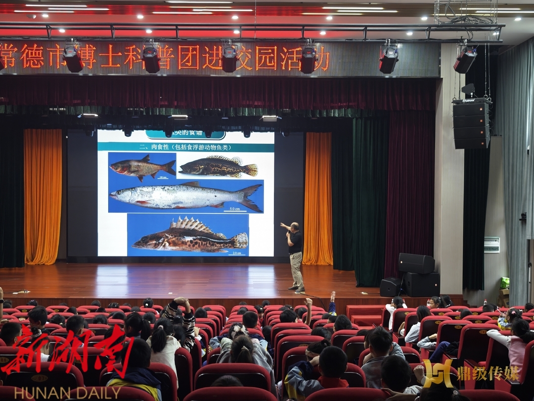 10月16日上午,湖南文理学院生命与环境科学学院水产学教授王金龙博士走进红云小 学,向孩子们介绍《有趣的鱼类》,科普了鱼的进化历史、种类、鱼类消失的原因和保护工作,极大地激发了孩子们对科学探索的兴趣。活动现场,孩子们的知识储备、踊跃发言也让教授连连称赞。