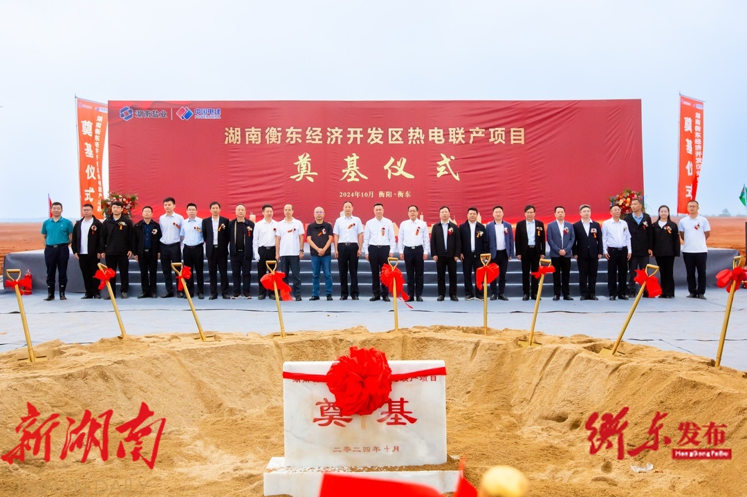 图:衡阳绿色盐碱产业基地配套项目衡东经济开发区热电联产项目奠基仪式现场