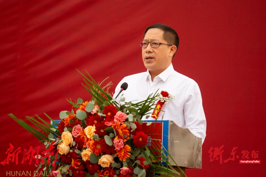 在仪式上蒋崇华指出,近年来,我县始终坚持把项目建设作为促发展的主抓手、拼经济的主战场,牢牢牵住项目建设“牛鼻子”,全县项目建设呈现出接续不断、环环相扣的良好态势。热电联产奠基仪式是衡阳绿色盐碱产业基地项目的起点基石,项目是贯彻落实湖南省委省政府“三高四新”美好蓝图,打造“北石化、南盐化”产业格局的重点项目,被列为全省十大产业项目之一。项目总投资约101.8亿元,建成后将实现年创税收近3亿元,主要建设内容是80万吨/年联合制碱、60万吨/年合成氨、50万吨/年尿素、热电联产等装置。项目建成后有利于充分发挥衡阳盐卤资源及区位优势,补强全省盐卤化工产业链。自项目2023年初正式签约入园以来,我们齐心协力攻难点,千方百计抢进度,多措并举强保障,衡东经开区一年内完成省级化工园区认定、调扩区工作,并于本月15日获省政府同意启动扩片工作,跑出了衡东的“加速度”,助力衡阳绿色盐碱产业基地项目进入了“快车道”。