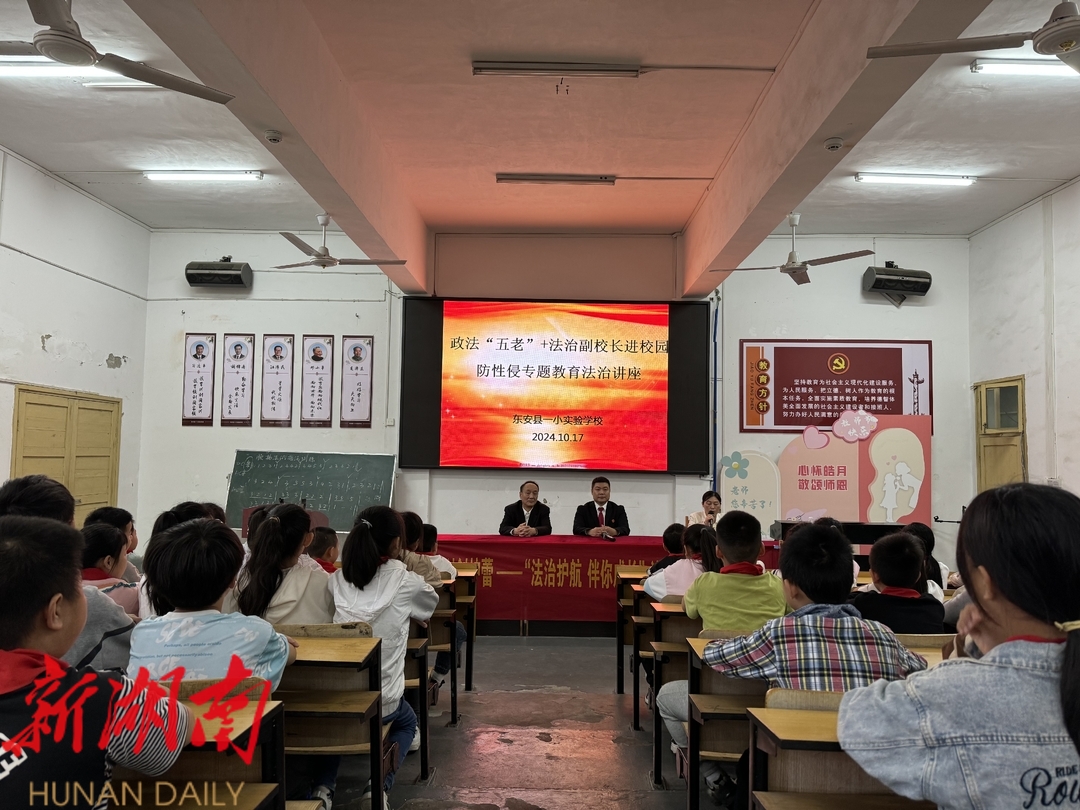 新湖南客户端10月17日讯(通讯员 唐悦 龙雪萍)为保护未成年人身心健康成长,构建和谐文明的平安校园,10月17日,东安县政法“五老”宣讲团走进东安县一小实验学校开展政法“五老”和“防性侵”法治讲座活动。