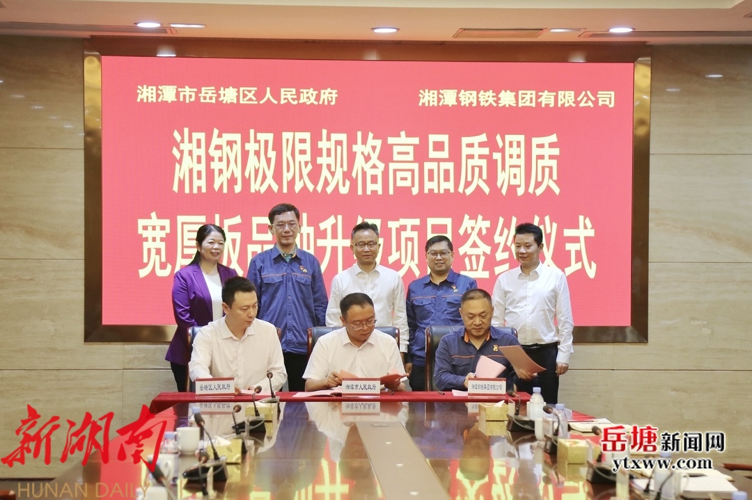 岳塘新闻网10月18日讯 (记者 康艳)10月18日,湘钢极限规格高品质调质宽厚板品种升级项目启动。湘钢与岳塘区经过友好协商,签订“湘钢极限规格高品质调质宽厚板品种升级项目征地拆迁总包干协议”,这也是全市推动传统制造业高端化、智能化、绿色化转型,实现产业增长“第二曲线”的具体实践。