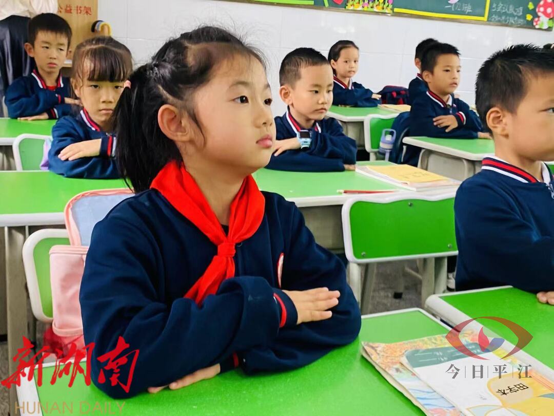 “上课坐姿——”“身挺直背不弯脚放平坐如钟!”稚嫩的声音与端正的姿态相得益彰,那一声声清脆的口令,仿佛一串串清脆的音符。