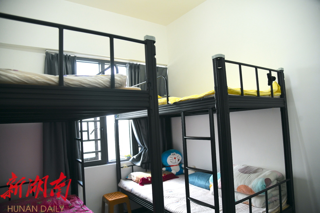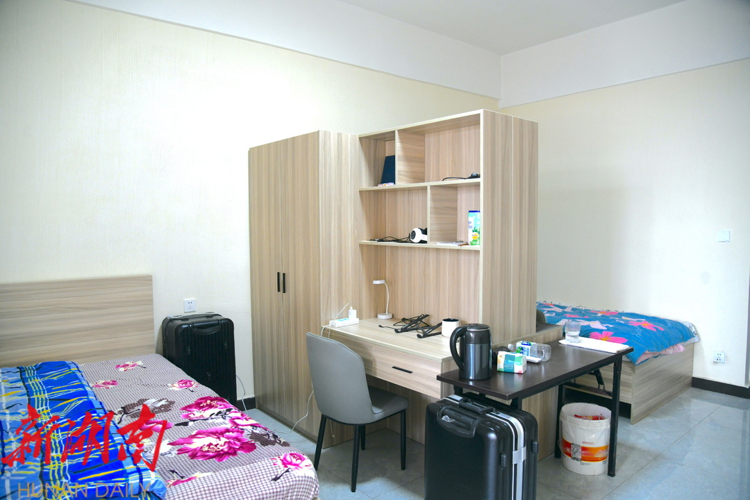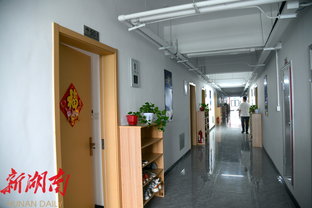 无独有偶。在距离金彩螺15公里的湖南俊杰晟自动化设备有限公司宿舍,喜庆的福字、原木色的鞋柜、活力满满的绿植让人眼前一亮,32套房间整洁素雅,空调、洗衣机、厨具……满满的贴心周到。