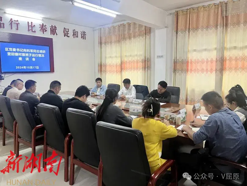 湖南日报·新湖南客户端10月21日讯(通讯员 魏璐璇)10月17日,区党委书记向科军赴营田镇调研村级班子运行情况及后段重点工作。区党委组织部、营田镇相关负责人参加。