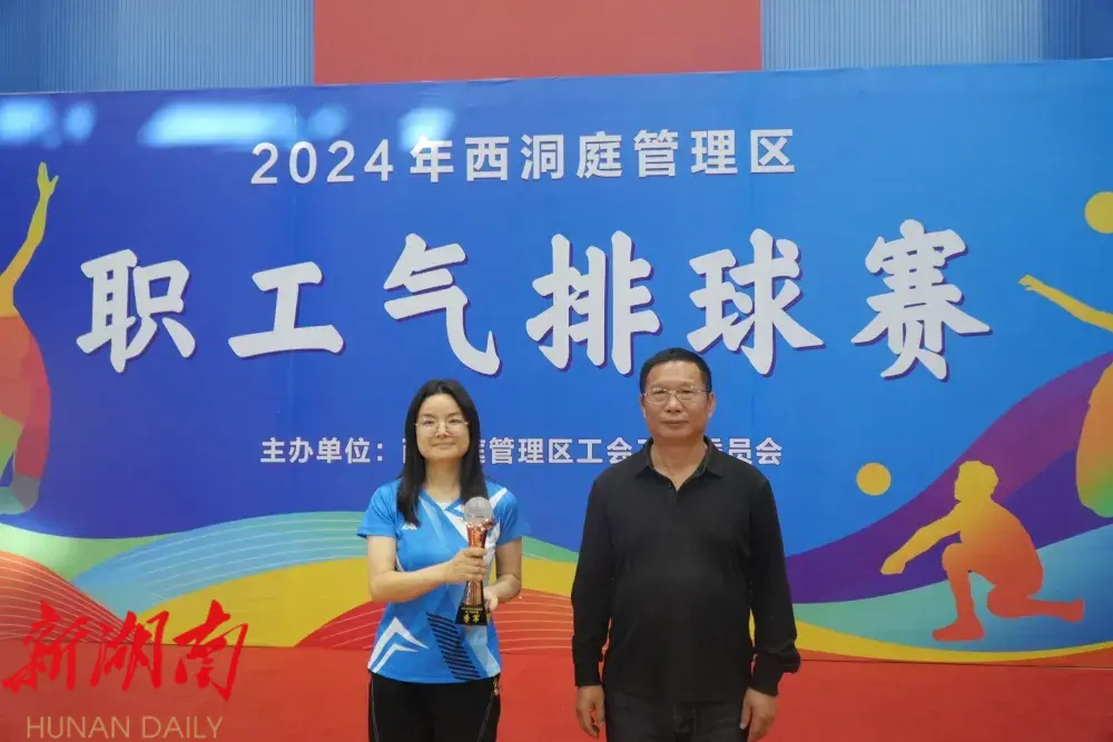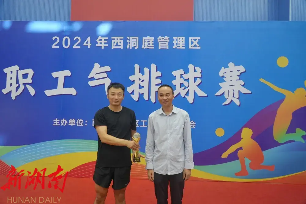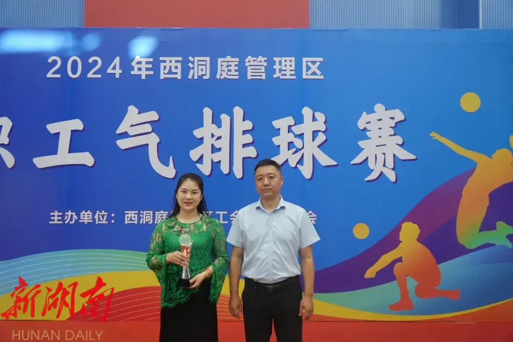 10月18日下午,我区气排球赛在西洞庭创新创业示范园职工健身中心圆满收官。区党委委员、管委会副主任郭蕾、区党委委员、纪委书记、监工委主任孙晖宇出席闭幕式并为获奖队伍颁奖。