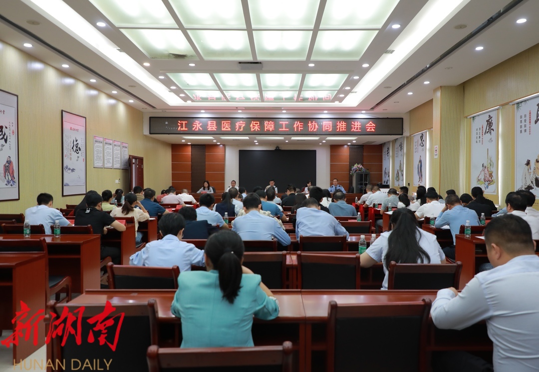 新江永客户端讯(记者 周佳琳 欧阳奥成 通讯员 周国祥 李楷 ) 10月18日,江永县医疗保障工作协同推进会召开,县委副书记、县长何德波,副县长蒋丽君,相关县直单位主要负责人,分管负责人,各乡镇(场)主要负责人、分管领导、医疗保险征缴专干近200人参加会议。