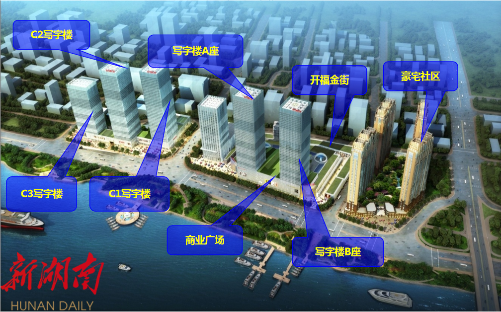 项目位于湘江大道与橘子洲大桥交汇处,B区和C区分别于2013年9月1日和2015年1月1日正式交付。总建筑面积达44.44万平方米,由B区的2栋写字楼和C区的3栋写字楼组成,均属于5A甲级写字楼标准。
