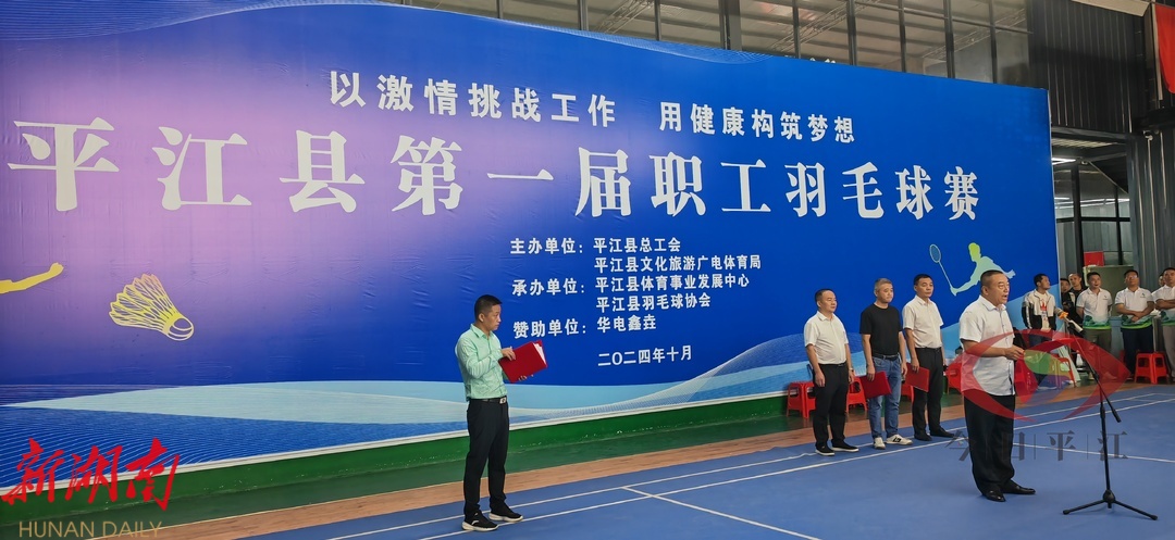 10月19日,由平江县总工会、文化旅游广电体育局主办,平江县体育事业发展中心、羽毛球协会承办平江县第一届职工羽毛球赛在汇友羽体育馆开赛。副县长李三军出席开幕仪式并宣布开赛。