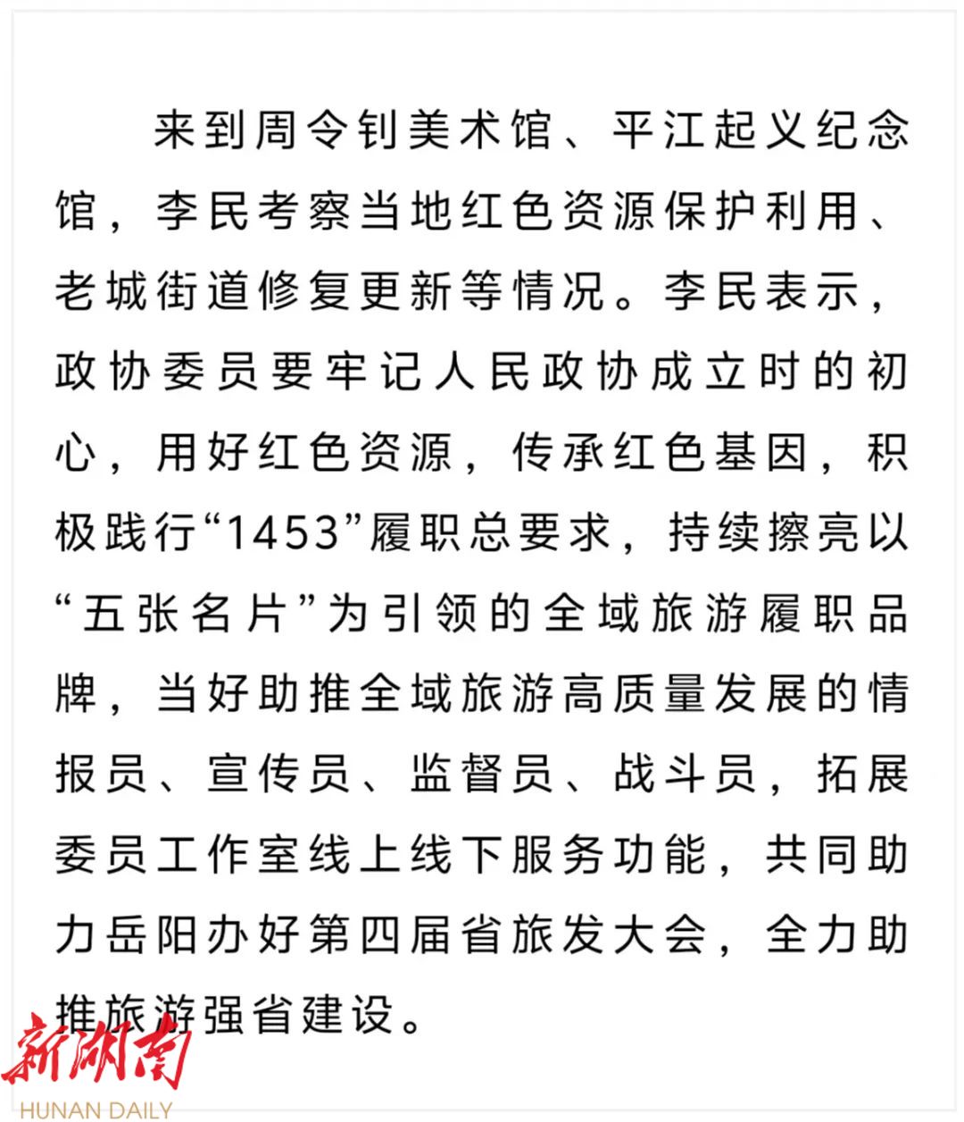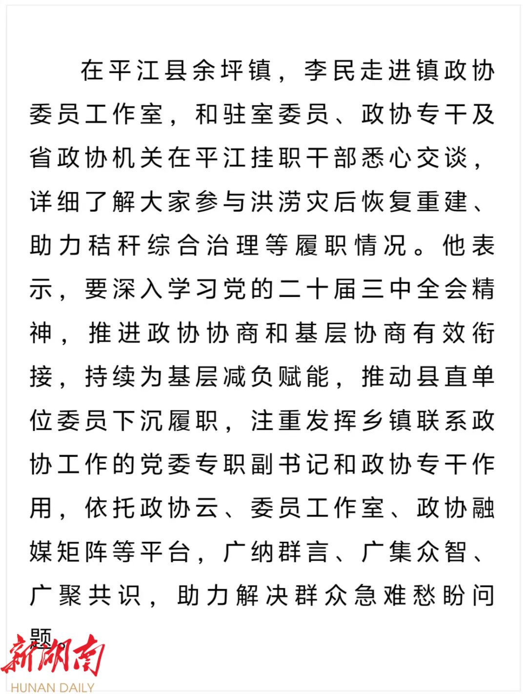 调研期间,李民还来到平江县政协机关、天岳街道政协委员工作室、湖南华电平江电厂等地,听取有关意见建议。