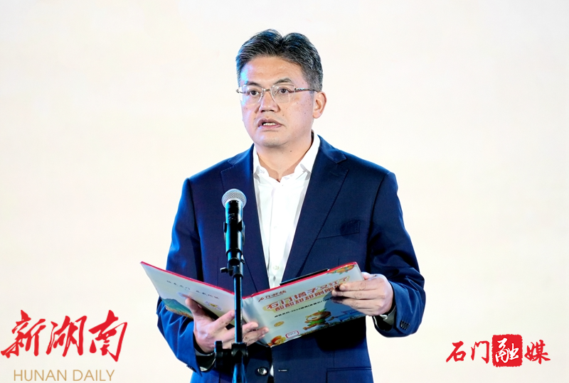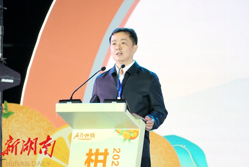 湖南省柑橘协会会长邓子牛从探索自然馈赠、品味柑橘盛宴,营养美味、健康之选,分享丰收喜悦、共话美好愿景三个方面推介湖南常德石门柑橘。