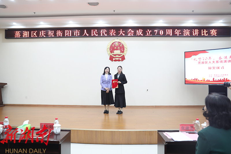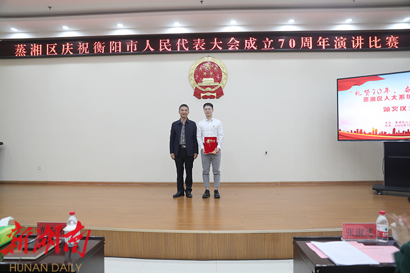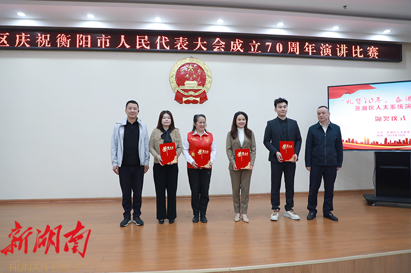 10月24日,“礼赞70年,奋进新时代”蒸湘区庆祝衡阳市人民代表大会成立70周年演讲比赛圆满举办。区人大常委会主任彭东阳出席并致辞,区人大常委会副主任黄亚君、杨安平、刘朝荣出席并颁奖。