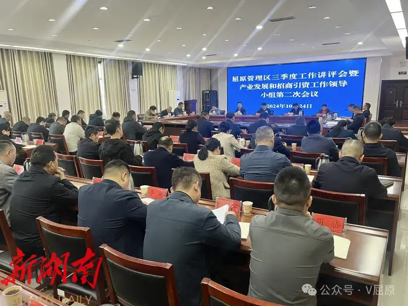 湖南日报·新湖南客户端10月25日讯(通讯员 魏璐璇)10月24日上午,屈原管理区三季度工作讲评会暨产业发展和招商引资工作领导小组第二次会议召开,会议深入贯彻中央、省委和市委决策部署,盘点讲评前三季度工作,分析研判当前形势,安排部署后段工作,动员全区上下以决战决胜的姿态,冲刺四季度、夺取全年胜,奋力完成年度目标任务。区党委书记向科军主持会议并讲话,区党委副书记、管委会主任沈小星及全体在家区级领导出席会议,区直及驻区有关单位主要负责人、乡镇(街道)党政主要负责人参加会议。