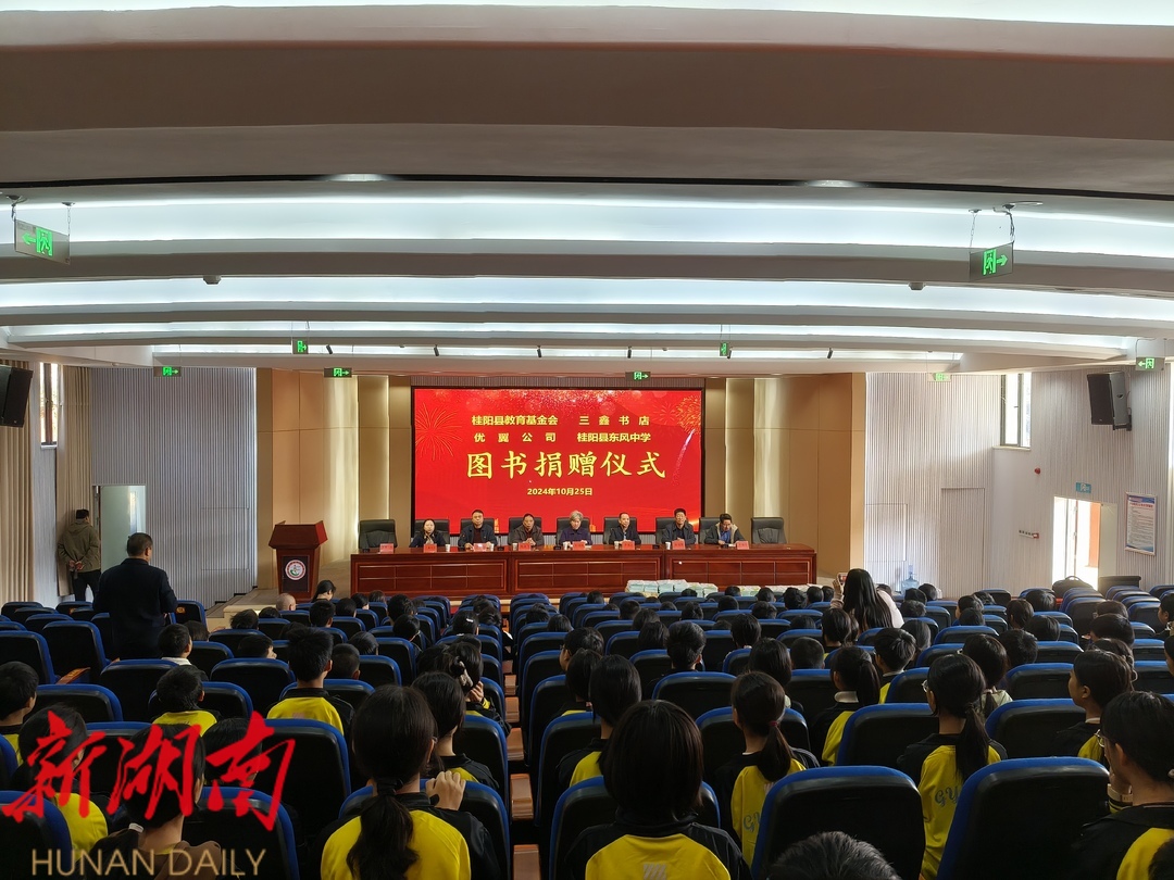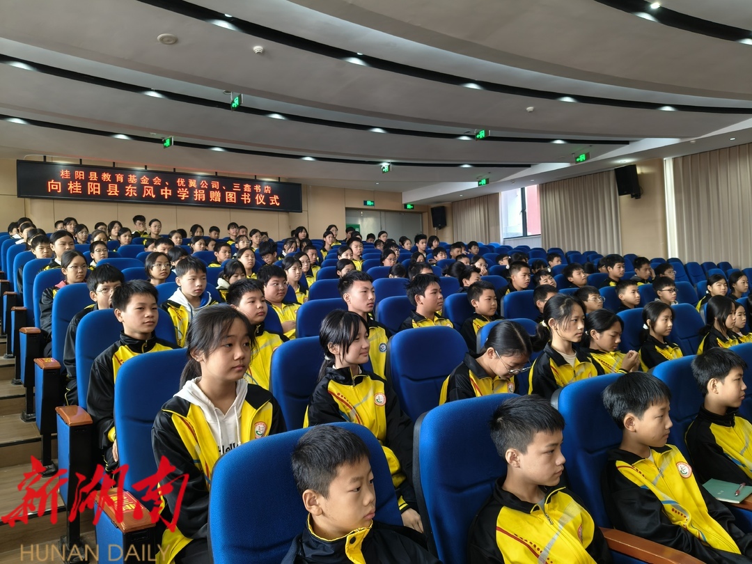 新桂阳10月25日讯(记者 邓明俊 )今天,县教育基金会、优翼公司、三鑫书店向东风中学捐赠图书。