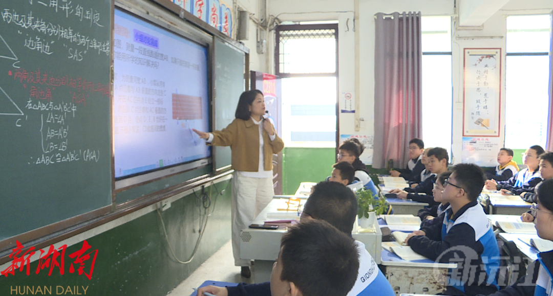 走进琼湖中学2311班,姜红正在讲台上为学生讲授全等三角形的判定方式。一头齐肩短发,圆圆的脸颊与总是带着笑意的月牙眼,让她看起来十分和蔼可亲。今年是姜红从事教学事业的第24个年头,作为数学教师,她十分注重激发学生学习兴趣,经常利用小组讨论、你问我答等方式为学生培养良好的学习习惯。