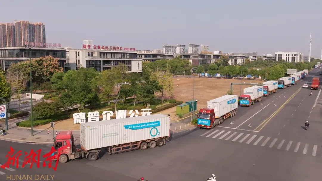 除了用于基建的“大块头”,园区中小企业“小而美”制造产品同样备受非洲人民喜爱。近日,由湖南卓誉科技有限公司自主研制的15台全性能制氧热水一体化方舱从长沙经开区出发,到达霞凝港发往深圳,终点为非洲赞比亚。