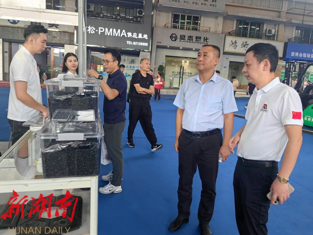 塑博会现场,彭利走访新邵县循环经济企业展位,并就新邵县现有企业发展与循环经济产业现状、未来发展趋势和参展企业、专家进行深入交流。他指出,目前循环经济产业发展前景广阔,增长潜力巨大,相关企业要紧跟国家政策导向,立足自身优势,加强与一线企业交流学习,做精做细做强新邵县循环经济产业。