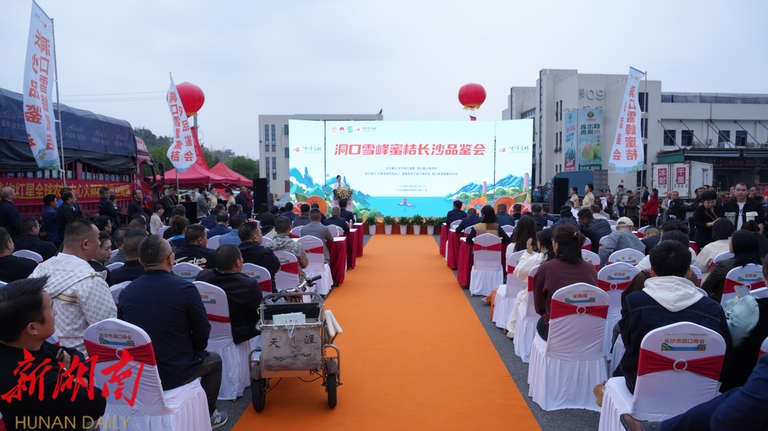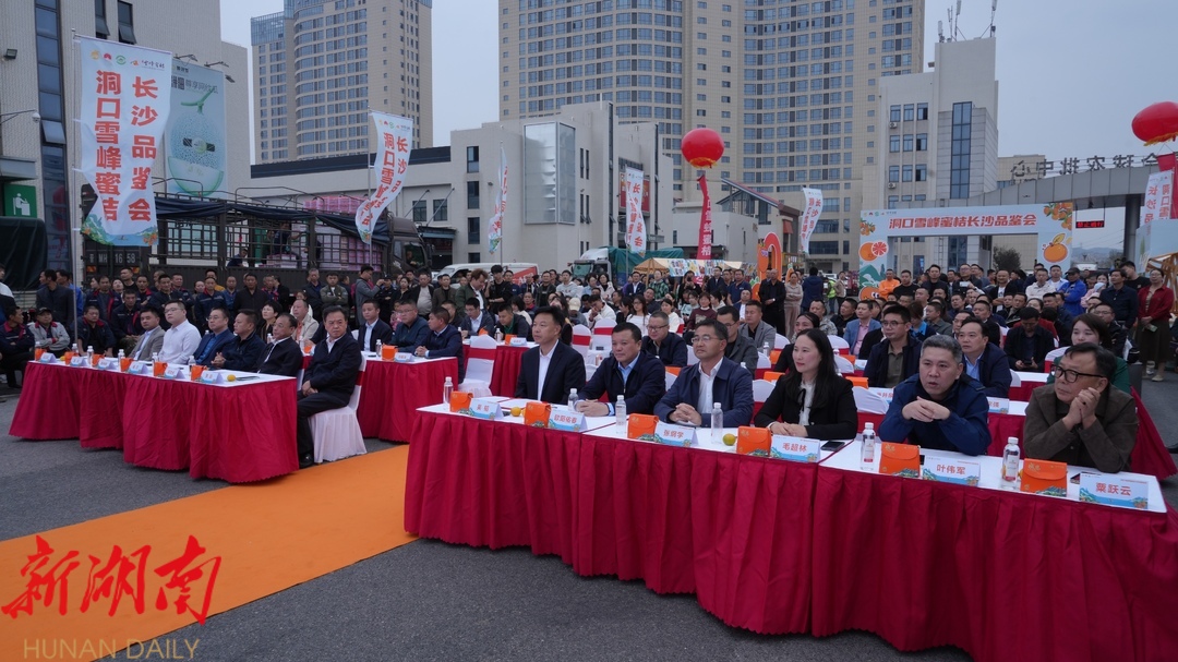 在品鉴区,来自洞口县众望柑桔种植农民专业合作社柑桔基地和洞口满妹子雪峰蜜桔专业合作社柑桔基地的一千余斤雪峰蜜桔摆放整齐,色泽鲜艳,桔香扑鼻,前来参加活动的采购商、市民及游客频频驻足品尝。