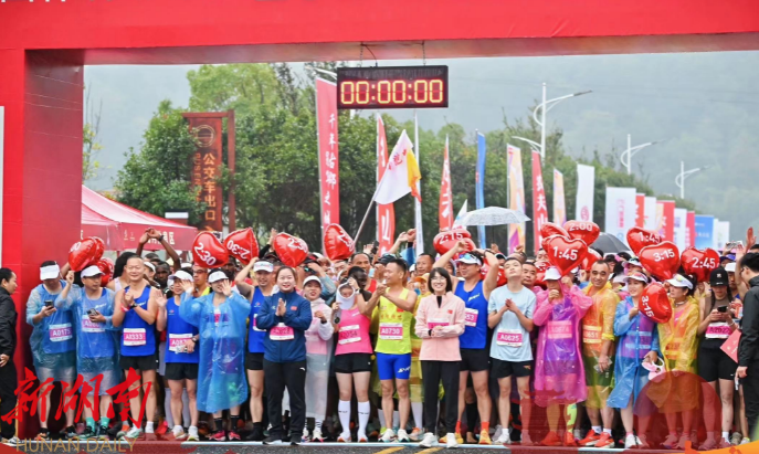 新桂阳10月27日讯(记者 戴奇成 曹诗灏 欧阳宇轩 实习生:蔡可意)今天上午,中国体育彩票•2024 年桂阳半程马拉松激情开跑,吸引了3000余名国内外跑友参加比赛,在“一半山水一半城”的美景中,共同完成了这场充满挑战与活力的体育盛宴。副市长周海林,县委副书记、统战部部长杨君毅出席赛事开幕式。