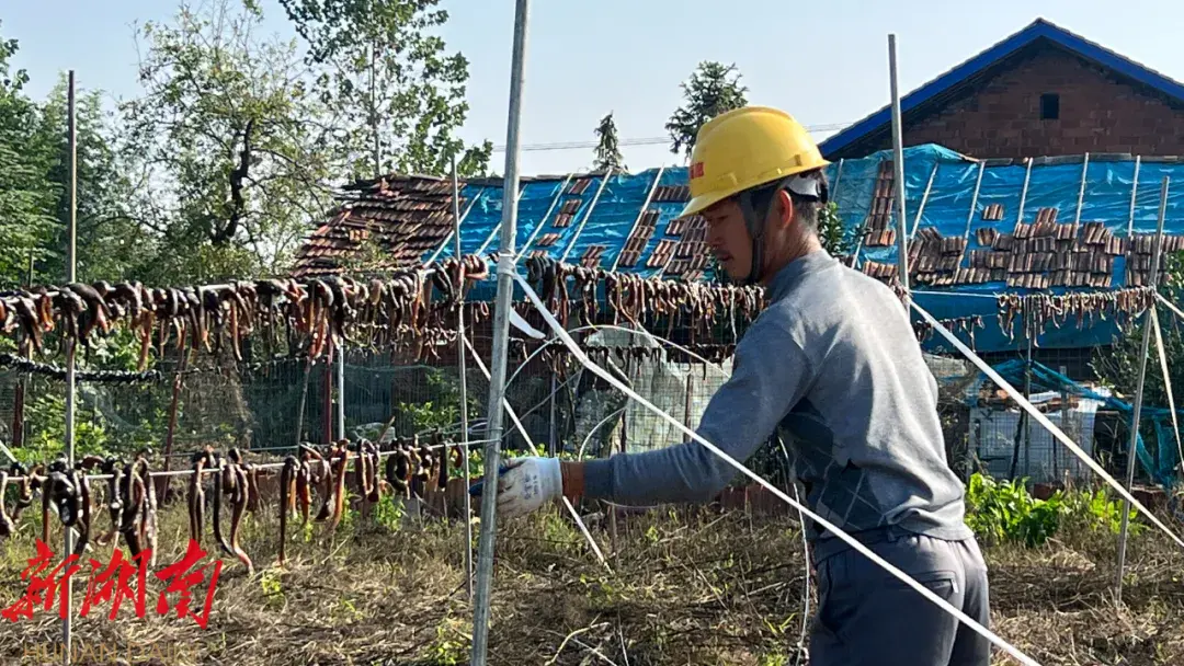 10月25日,在彭家洲村常德文朗水产生态养殖水蛭养殖基地,记者看到,工人们正在对水蛭进行分拣,然后用铁丝穿起来进行晾晒。水蛭养殖基地负责人丁子砖作为新农人,经过长达10年的技术研究,最终选择了水蛭这一养殖项目,别人眼中的“吸血鬼”成为他眼里名副其实的“软黄金”。