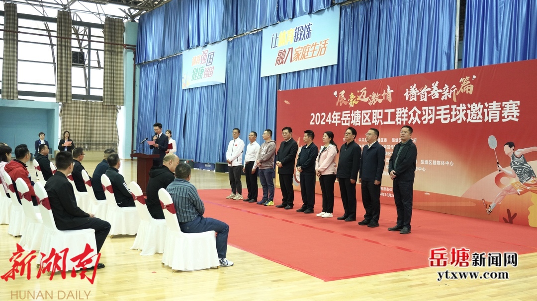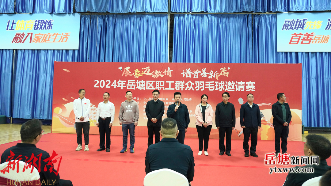 岳塘新闻网10月 26 日讯 (记者 郭奕含 )10月 26 日 上午, “展豪迈激情 谱首善新篇” 2024年 岳塘区职工群众羽毛球邀请赛 在湘潭市体育中心 开幕 。岳塘区委书记、岳塘经开区党工委书记曾志君出席并宣布活动开幕,岳塘区委副书记、区人民政府区长周赏玲出席,岳塘区委副书记、统战部部长陈交云致辞。湘潭市交通局党委书记、局长黄建文,湘潭市医疗保障局党组书记周复明,湘潭日报社党组书记、社长、总编辑龙香玖 ,湘潭市总工会党组成员、副主席颜靖宇,湘潭市全民健身服务中心主任王昊志, 湘潭市原羽毛球协会主席冯建平, 岳塘区领导高蒙、伍意明、蒋新跃等出席 。