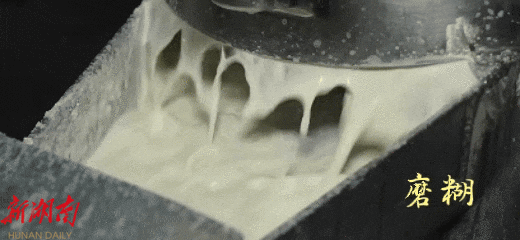 第三步:磨糊与煮浆。浸泡好的黄豆与水按一定比例进行磨浆, 磨浆时要注意控制水的量和速度, 随后利用超过100°的水进行微压煮浆, 沸水能杀死可能存在的有害微生物, 使其健康、易吸收, 下一步用细纱布过滤除渣, 使得豆腐更细腻。