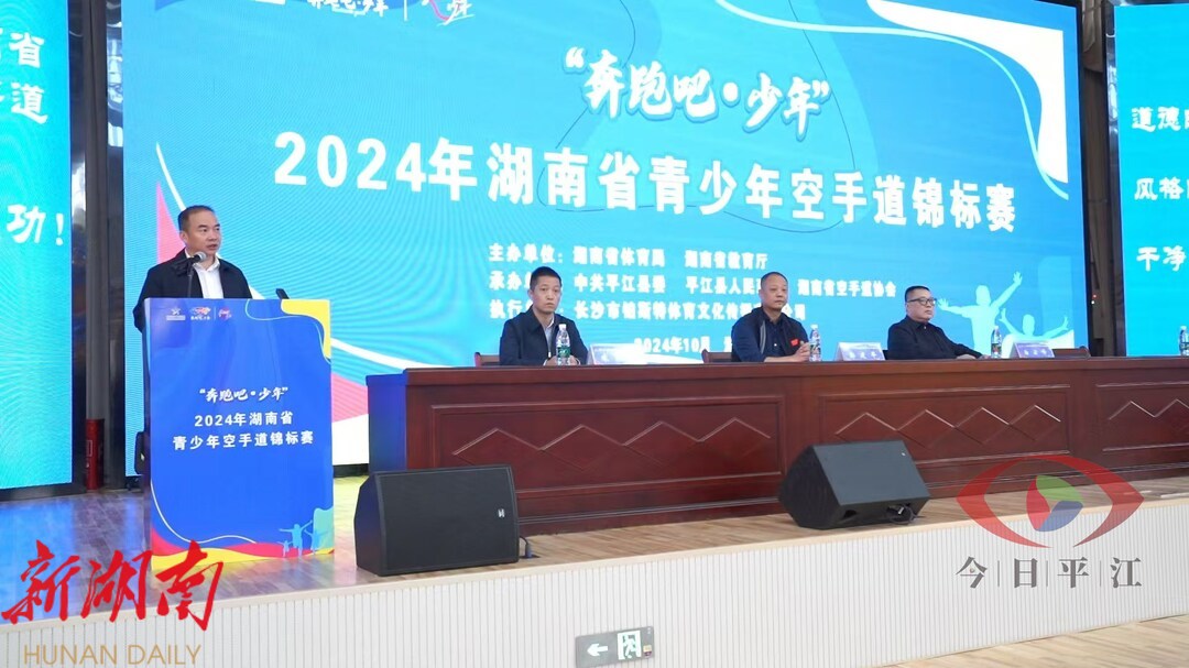 10月25日上午,2024年湖南省青少年空手道锦标赛在平江县第一中学体育馆开幕,副县长李三军出席活动并致开幕词。