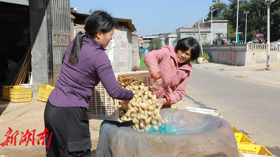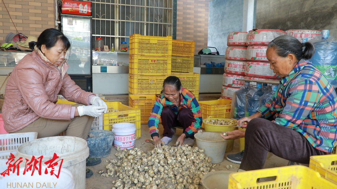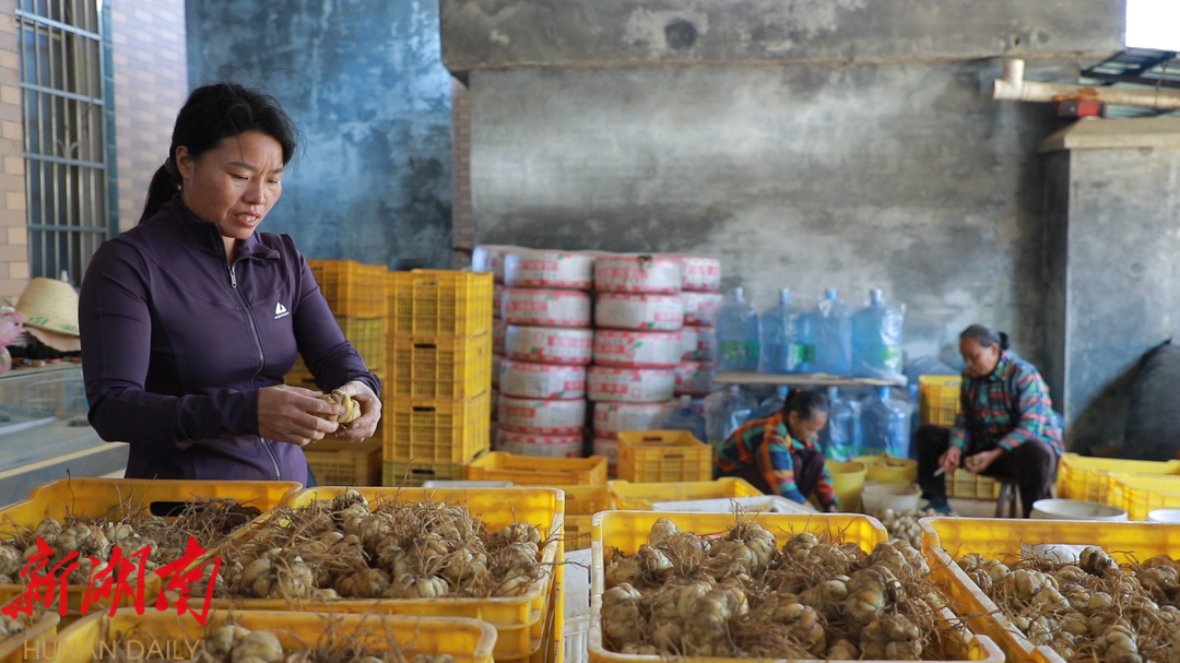 在蒋跃花的家里,十余名工人熟练地挑选着外观饱满、大小合适的百合种子,而蒋跃花则忙着将筛选出来的一筐筐种子倒入药水中消毒杀菌,现场一片繁忙景象。