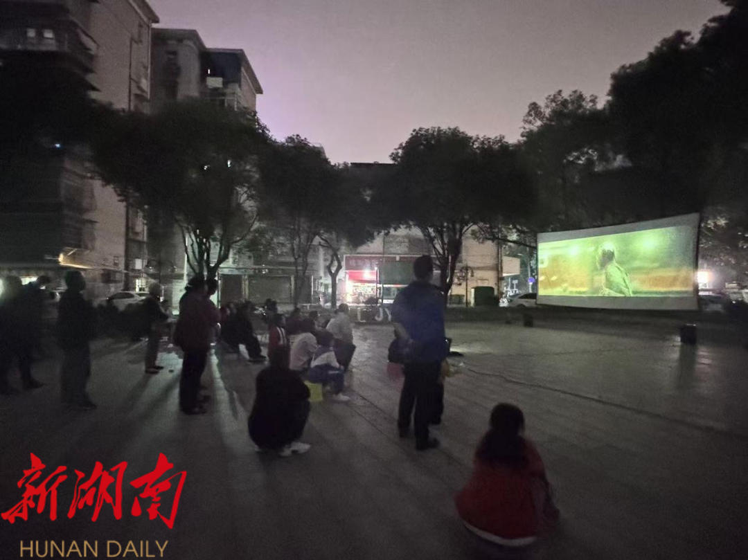 随着夜幕降临,露天电影《我和我的祖国》正式开始播放。这部影片以小人物的视角展现了新中国成立75年来的七个重大历史瞬间,勾起了居民们的无数回忆。大家纷纷被影片中的情节深深吸引,现场气氛热烈而温馨。