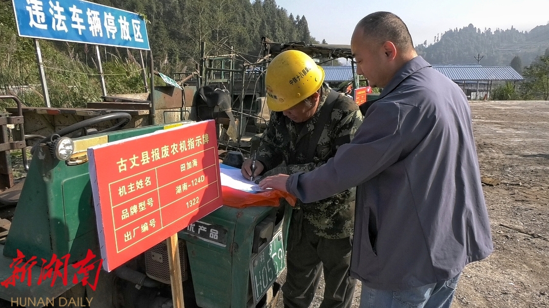 新湖南客户端10月30日讯(见习记者 余思颖 通讯员 张海滨)为推动“两重”“两新”工作和农机报废更新补贴政策举措落实落地,加快农业机械结构调整,有效排除农机安全隐患,提升农机高端化、智能化、绿色化水平。10月29日,湘西土家族苗族自治州古丈县政府办、县农业农村水利局、县农机中心、古阳镇人民政府联合开展农机集中报废行动,报废一批达到报废年限、安全性能低的老旧农机。