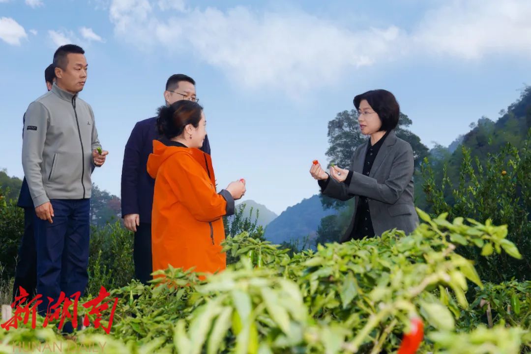 “今年试种的辣椒很成功,明年的辣椒已经有30亩订单了。”省检察院驻村工作队队长杜晖介绍,新引进的黄兴东山辣椒产业在两河口村喜获丰收,将为村集体经济带来可观收益。叶晓颖充分肯定了驻村工作队带动村民就业致富的积极探索,她强调,要立足现有产业特色,做优做强柑橘全产业链条,继续做好黄兴东山辣椒新兴产业的扶持发展,稳步拓展农产品深加工产业、农业观光旅游等产业,依托两河口村的生态优势,科学规范推动乡村旅游,增强村民的获得感和幸福感。