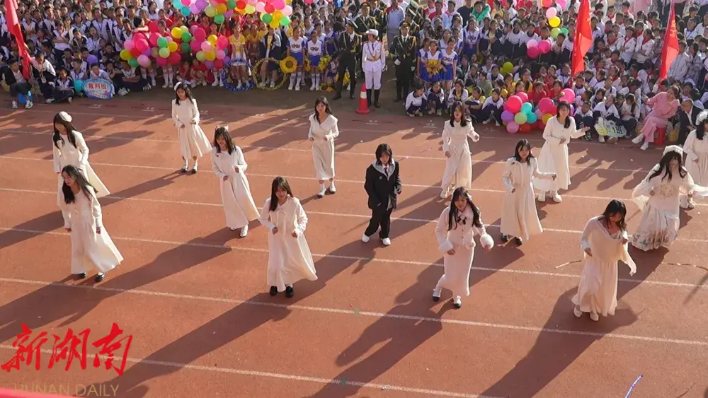 伴随着雄壮的旋律和激情的解说,国旗方队、校旗方队、彩旗方队、初高中学生方队迈着矫健的步伐依次入场,在方阵表演中,初高中学生们手持彩旗或道具,随着音乐的节奏挥舞,展现出青春的活力和朝气。