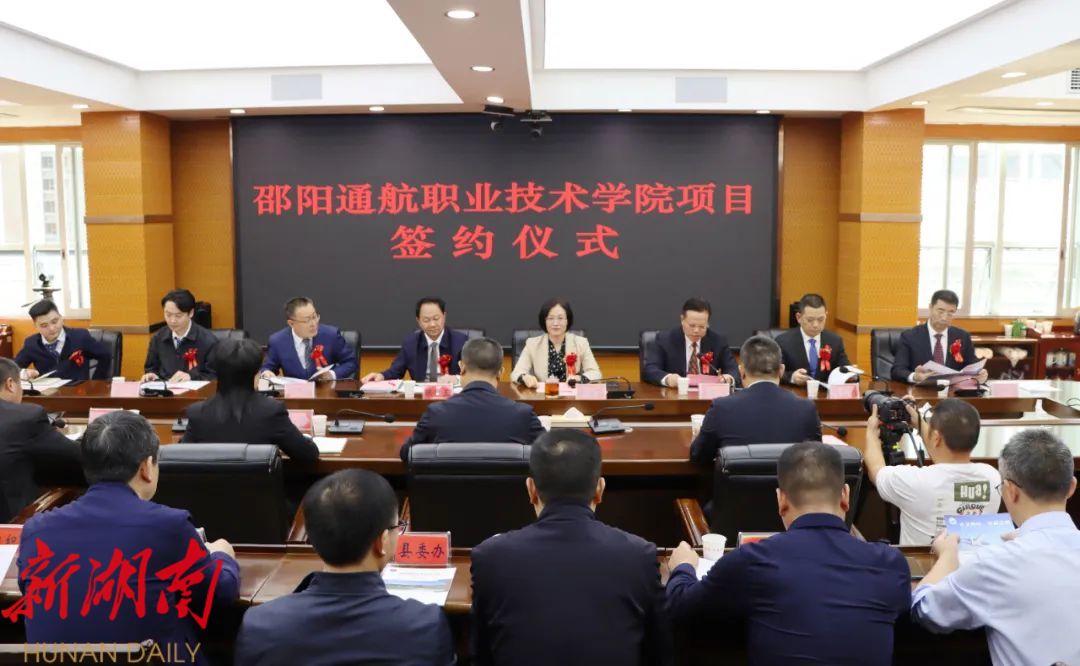 新新邵客户端10月31日讯 10月30日,新邵县与湖南军航通教育管理有限公司举行项目签约仪式,项目预计总投资为12亿元。该项目的成功签约,也标志着湖南省首家以通用航空命名的高职院校正式落户新邵。县委书记黄海蓉出席并讲话,县委副书记、统战部部长王振波主持。